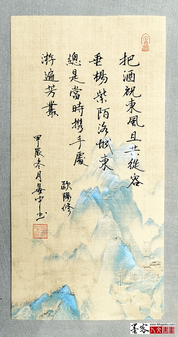 张彦中书法彩笺诗词:欧阳修:把酒祝东风,且共从容。垂杨紫陌洛城东。总是当时携手处,游遍芳丛。