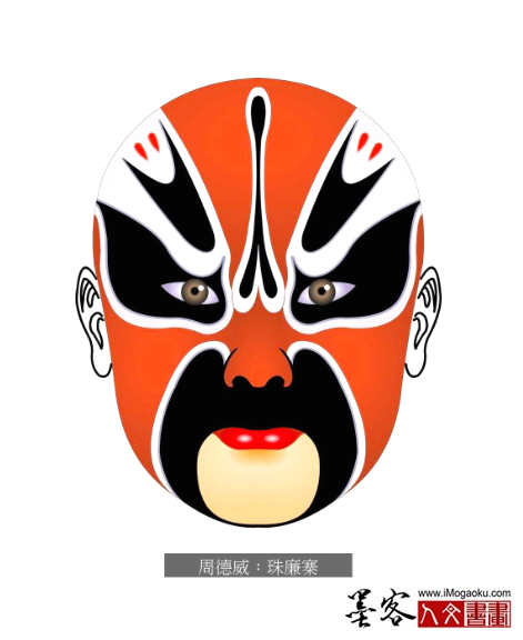 2、依据剧中人物姓名,附会色调,确定脸谱。如齐桓公因名“小白”而勾白脸,青面虎因“青”字勾绿脸,浪里白条张顺因“白”字勾白脸,黑风利、乌成黑等因“黑”字皆勾黑脸。