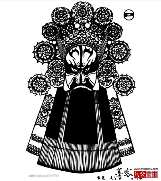2、依据剧中人物姓名,附会色调,确定脸谱。如齐桓公因名“小白”而勾白脸,青面虎因“青”字勾绿脸,浪里白条张顺因“白”字勾白脸,黑风利、乌成黑等因“黑”字皆勾黑脸。