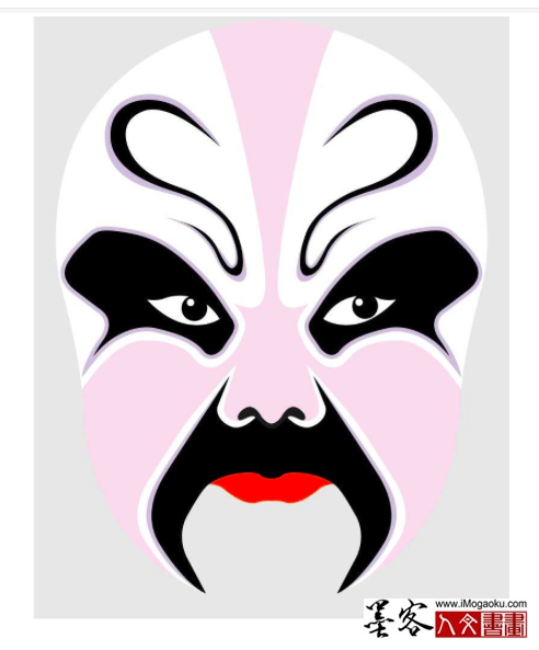 一种颜色为主色, 以夸张肤色,再勾画出眉、眼、鼻、口和细致的面部肌肉纹细。