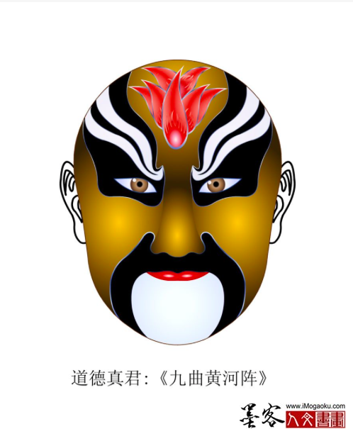 金色脸 象征威武庄严,表现神仙一类角色。如:《闹天宫》里的如来佛、二郎神。