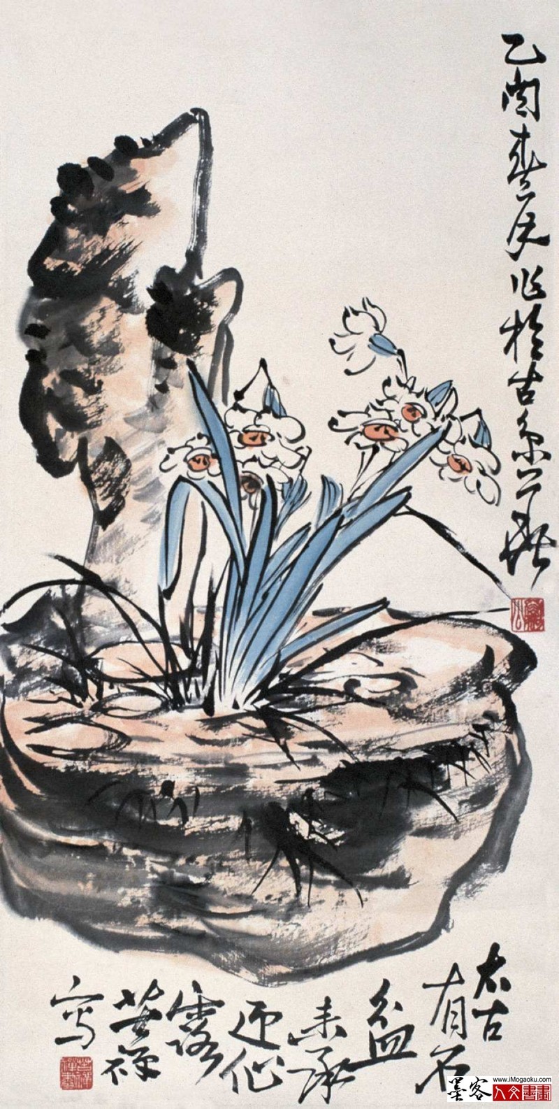 齐白石题李苦禅的画《清供图》道:“李苦禅也超过我了”。