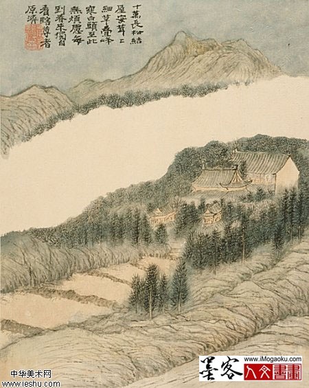 烟云:石涛画的云雾,多吸收黄山三大奇观之一--“云海”的精髓,特别强调烟云的动感和气势,基本有 三种笔法: