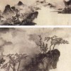 这些作品中有一幅根容易令人联想到董源巨然的风格:《仿董巨山水图》。他在这幅画中表现了堂堂的安定感,坚毅挺拔连绵的山峰,笔直延伸的树干,以不单调垂直地往复用笔,表现着斜陡的尖峭地形。如此一来完全地依照自己的喜好,以纵长的画面形式更强调着。所以在此,我们可知要脱离传统所具有的安定性是不可能的。诚如形容李成那样,再度确认十世纪之大作家不可动摇的重要性。