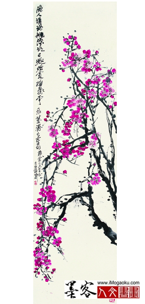 他酷爱梅花,以写大篆和草书笔法为之,墨梅、红梅兼有,画红梅水分及色彩调和恰到好处,红紫相间,笔墨酣畅。又喜作兰花,喜以或浓或淡的墨色和用篆书笔法画成,刚劲有力。画竹竿以淡墨轻抹,叶以浓墨点出,疏密相间,富有变化,或伴以松、梅、石等,成为“双清”或“三友”。菊花也是他经常入画的题材,伴以岩石,或插以高而瘦的古瓶,与菊花情状相映成趣。菊花多作黄色,亦或作墨菊和红菊。墨菊以焦墨画出,菊叶以大笔泼洒,浓淡相间。
