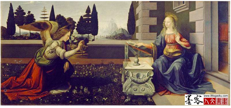 当他在作坊学艺时 ,就表现出非凡的绘画天才。约1470年他在协助韦罗基奥绘制《基督受洗》时,虽然只画了一位跪在基督身旁的天使,但其神态、表情和柔和的色调,已明显地超过了韦罗基奥。据传,韦罗基奥为此不再作画。现存他最早的作品《受胎告知》是达·芬奇在没有老师的指导下,独立完成的一件作品。除了有一点自由构思外,这幅画的场景都是达·芬奇遵循一般的透视画法来构思的。