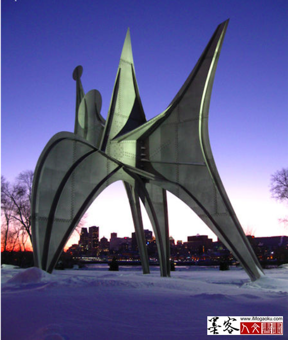 1950年代起,他开始设计大量纪念性公共雕塑作品,包括肯尼迪国际机场的“.125”、巴黎联合国教科文组织的“螺旋”(La Spirale)、1967年蒙特利尔世界博览会的“人”(Man)、密歇根州大急流城的“高速”(La Grande vitesse)、芝加哥克卢钦斯基联邦大厦(Kluczynski Federal Building)的“红鹤”(Flamingo)等知名作品。而他一生中最后一件大型作品则是为贝聿铭设计的国家艺术馆东大楼所作的动态雕塑。