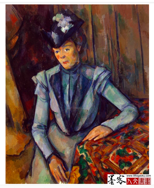 画家的目的在于表现颜色的质感,同刻画对象以及光线气氛效果毫不相干的质感。由于浓厚的颜料比稀薄透明的颜料具有更强烈的分色特性,所以塞尚干脆不用画笔,而用调色刀来画画,这样画出的画质感非常强烈。而且塞尚的画,由于完全没有明暗和颜色过渡,效果本身也粗放得多。刻画是没有立体感的,它是靠色彩对比力来突出和腾驾于背景之上的。塞尚的画好像是由一个一个的整齐的形状所构成,他的画轮廓很重的、只求远看效果。这表明他充分掌握了绘画材料的性能,但这不是人物的刻画。模特儿并不使塞尚发生兴趣,他所感兴趣的仅仅是物质的再现。