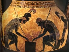 自身的追求与命运的矛盾,就形成悲剧。严格说,每个民族都有悲剧性,但希腊最浓,似乎只有日本与其向近。荷马史诗就是悲剧的代表。阿喀琉斯和赫克托尔是两种典型的悲剧人物。前者是自身追求与命运矛盾,后者是自身思想与国家使命矛盾。这里不祥加介绍。