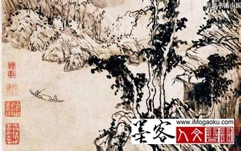 倪瓒的小挂幅《岸南双树》,可作为元代诗画与写画极为成功的一例。至正十三年(1355)初,他寄居吴淞江上甫里村的亲戚陆氏家月余,到二月底,他将离甫里的时候,画了《岸南双树》作为赠别陆氏的礼物。画上题记并赋诗云:余既为公远茂才写此,并赋绝句。甫里宅边曾系舟,沧江白鸟思悠悠;忆得岸南双树子,雨余青竹上牵牛。在这张画上他说明是“写”画而不是“画”画。那两棵树,一棵较高而苍老,一棵较柔嫩。两树互相偎依,好像代表了倪瓒和他的年青朋友“公远茂才”。在诗中,倪瓒提到了他两人在岸南流连时,看到沧江、白鸟和双树子的景象。这些景物虽并不在画面上出现,可是那种依依不舍,心头上说不出,语言中无法表达的感应,却很明显地在写树的线条