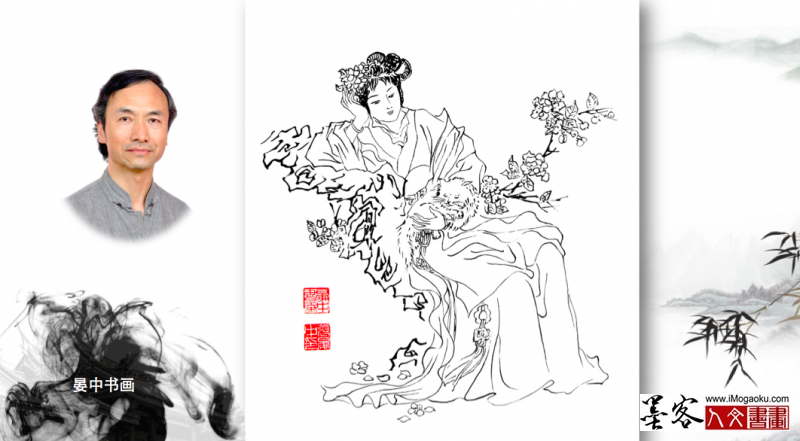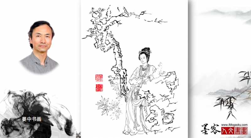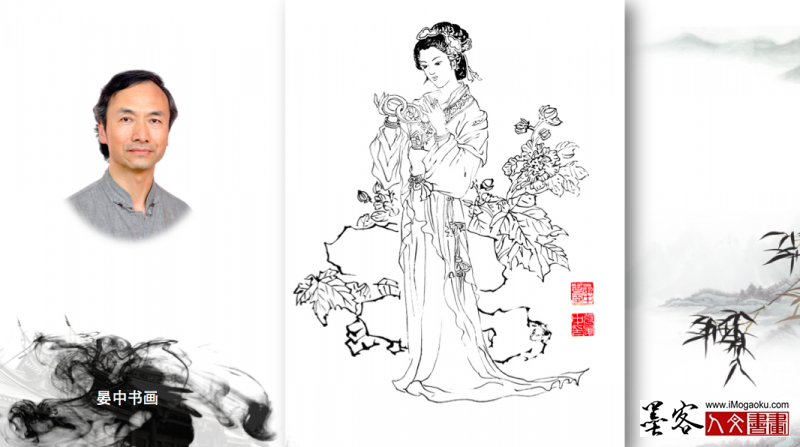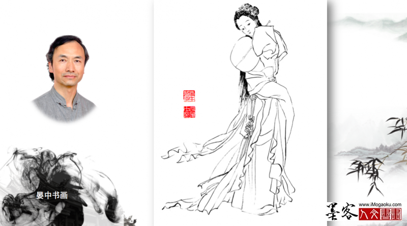 墨客人文书画鸣沙轩张彦中国画白描仕女图