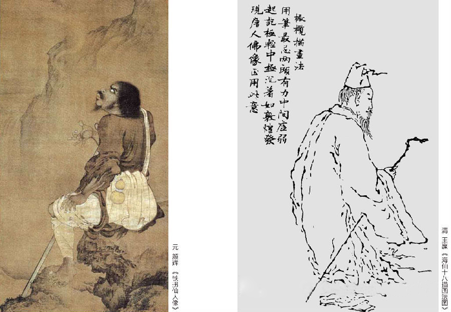 橄榄描 橄榄描用笔起迄极轻,头尾尖细,中间沉着粗重,所画衣纹如橄揽果实,故而得名。周履靖、汪砢玉认为此法为颜辉所创,如颜辉的《铁拐仙人像》,衣纹线条采用颤笔画出,头尾尖细,中间的线条粗如橄榄。