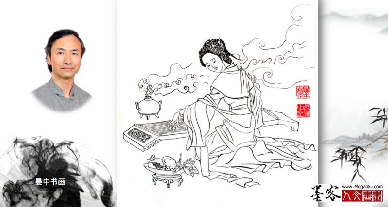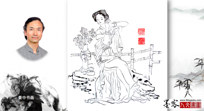 墨客人文书画之鸣沙轩张彦中手绘白描仕女图
