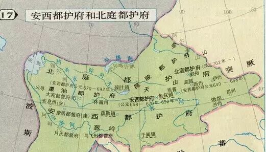 安西都护府和北庭都护府位置示意图(图片来自网络)