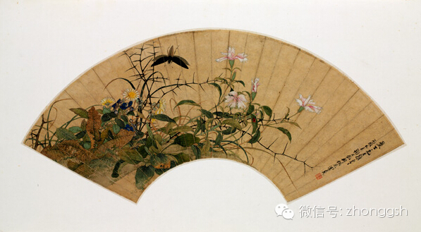 任熊 花卉草虫图 清咸丰六年(1856) 泥金笺设色