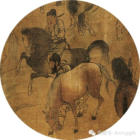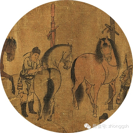 周代即已按优劣将马分为六厩:繁殖之种马,作战之戎马,仪仗之齐马,车驾之道马,耕作之田马,杂役之驽马。后代官营牧场也有类似划分。画中马匹,体态面貌各有不同,当为写实之作。且姿态各异,堪为粉本画样。
