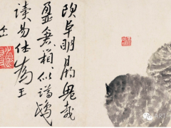 涉事》一幅,只画一朵花瓣,总共不过七、八笔便成一幅画。在八大那里,每每一条鱼,一只鸟,一只雏鸡,一棵树,一朵花,一个果,甚至一笔不画,只盖一方印章,便都可以构成一幅完整的画面,可以说少到不可再少了的程度。前人所云“惜墨如金”,又说“以少少许胜多多许”,只有八大才真正作到了这点,可谓前无古人,后难继者。