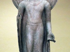 首先看贵霜时代的秣菟罗造像。秣菟罗位于印度德里南150公里的朱木拿河岸,即印度中部地区,曾经是贵霜王国的三处都邸之一,所以也深受希腊文化影响。秣菟罗的雕刻传统悠久,在佛教兴起前即是雕刻的产地,曾大量制作印度民间喜爱的代表丰饶幸福的药叉女神,至今可见一至二世纪的作品。