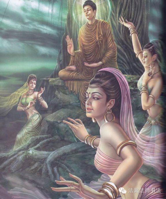 佛陀的参悟惊动了魔王波旬,于是魔王派遣他的三个女儿前来魅惑佛陀,试图让佛陀放弃参悟,然而佛陀不为所动。