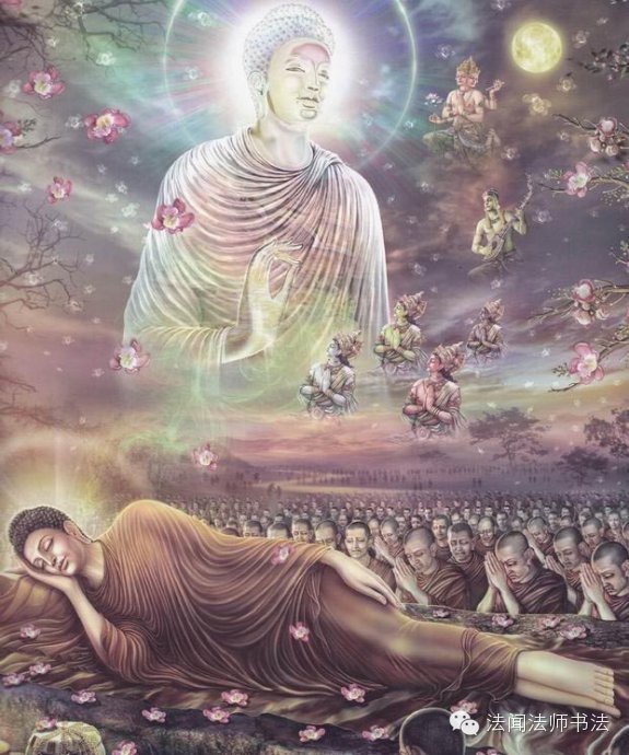 佛陀对弟子们做了最后的开示后,安详的右卧,进入涅槃。所有的人都应佛陀入灭而悲泣难止,大地震动,人神共悲,因为他们知道,他们的唯一依靠将离他们而去。佛陀并没有像他方世界的佛陀那样选择长久的住世,而是这么早就示现涅槃,因为他担心弟子们会因为他的长久住世而放逸修行,可见佛陀的良苦用心!然而佛陀的化身虽然离开了众生,法身却是一直存在的,他存在于佛陀创立的僧团之中,存在于法本文字之中,存在于整个虚空界,只要有一个众生哪怕是微小的蝼蚁需要他的帮助,只要因缘具足,佛陀的加持依然如住世时一样无二无别。
