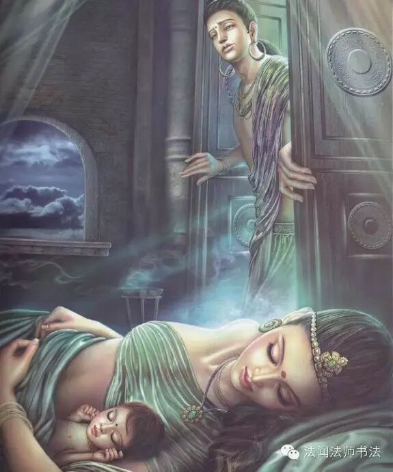一天夜晚,太子悄悄的走出房间,离开了妻子儿子。
