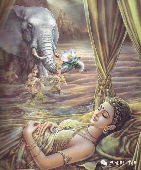 佛陀的母亲摩耶夫人梦见白象而受孕。