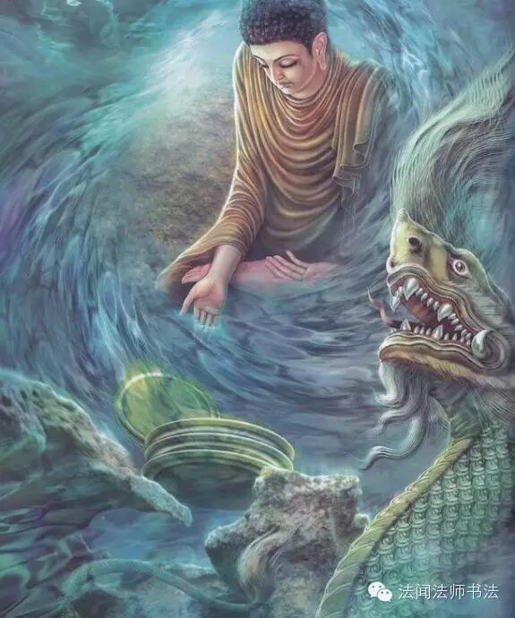 佛陀发愿成佛,以碗碟放入水中,发愿曰:如若能成佛,则希望碗碟逆流而上。