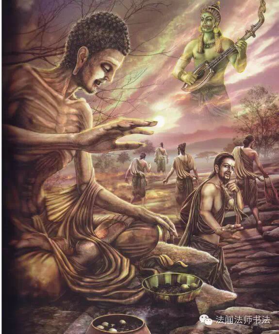 悉达多向所有世间的“成就者”们求学,尝试了世间所有的修行方式,达到了世间能达到的所有顶端境界,但他发现并没有达到他出家的目的,于是放弃了苦行。见天神于空中弹琴,了悟了中道。