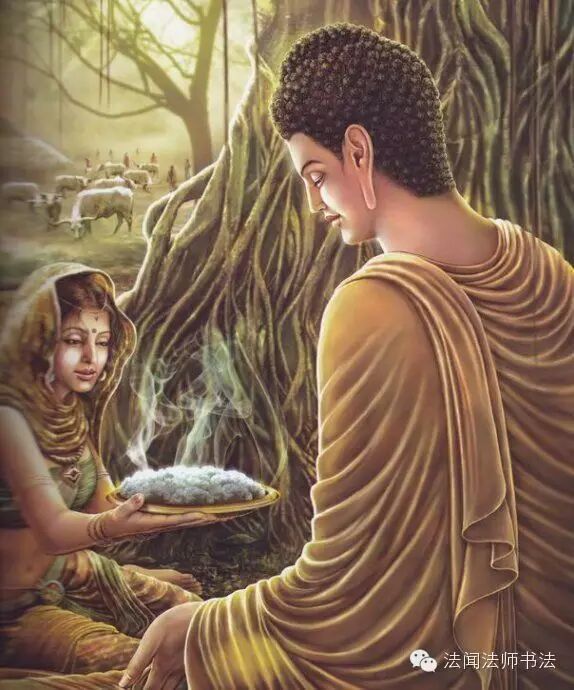 一位牧女向悉达多供养了奶粥,悉达多因此得以恢复体力而重新开始修行上。