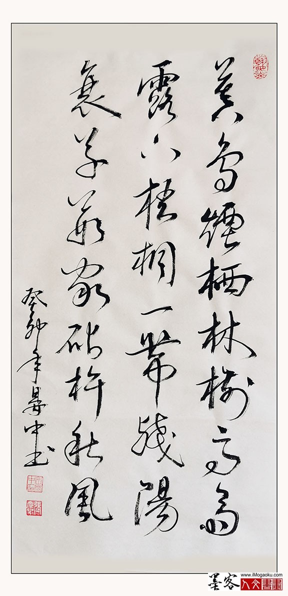 张彦中书法诗词:唐.白浩然:暮鸟烟栖林树,高斋露下梧桐。 一带残阳衰草,数家砧杵秋风。