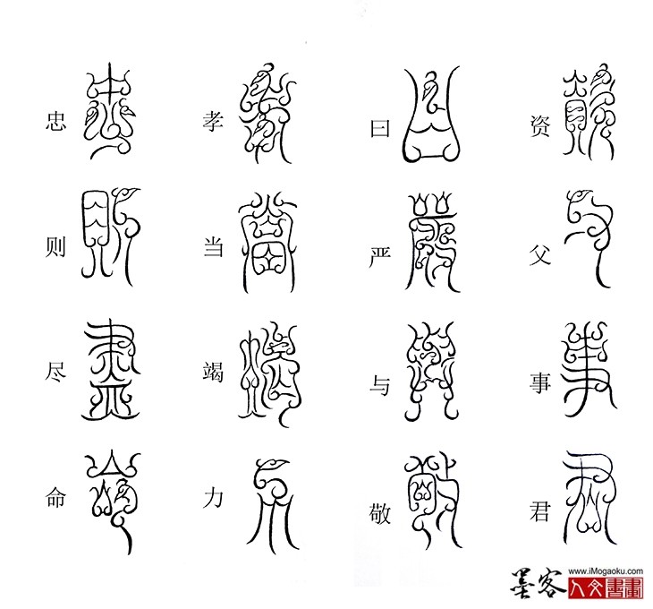 张彦中书法鸟虫篆《千字文》:资父事君,曰严与敬。孝当竭力,忠则尽命。