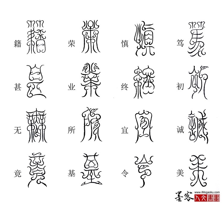 张彦中书法鸟虫篆《千字文》:笃初诚美,慎终宜令。荣业所基,籍甚无竟。