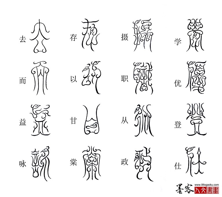 张彦中书法鸟虫篆《千字文》:学优登仕,摄职从政。存以甘棠,去而益咏。