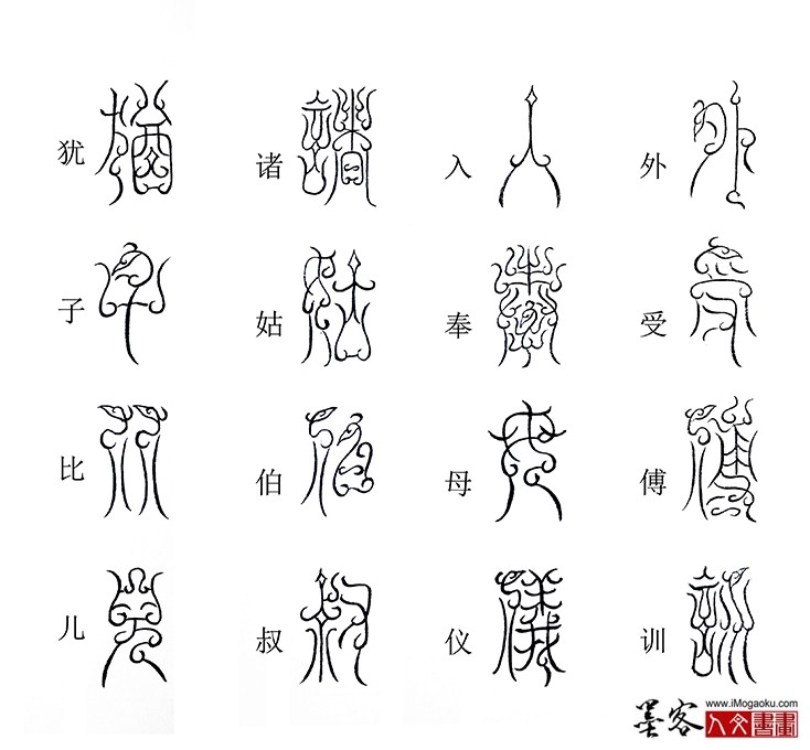 张彦中书法鸟虫篆《千字文》:外受傅训,入奉母仪。诸姑伯叔,犹子比儿。