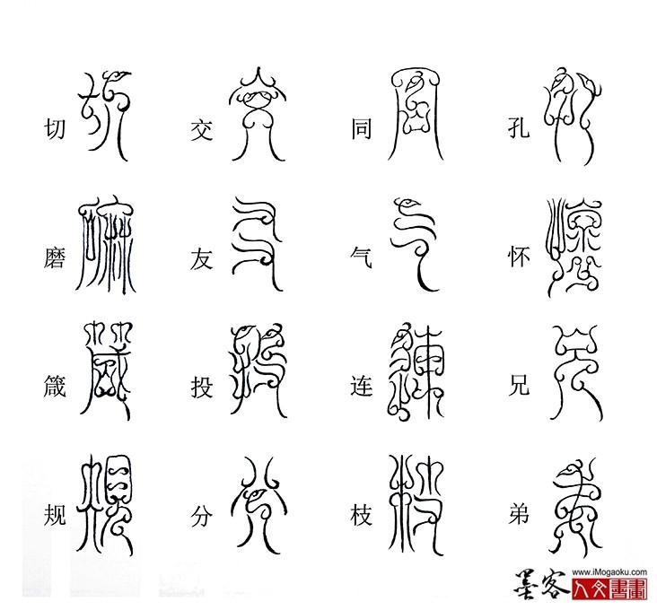 张彦中书法鸟虫篆《千字文》:孔怀兄弟,同气连枝。交友投分,切磨箴规。