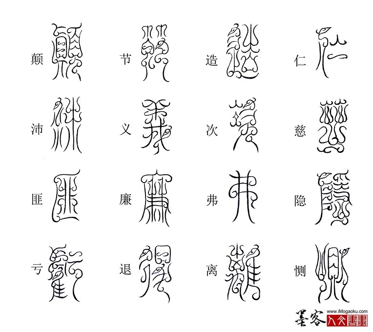 张彦中书法鸟虫篆《千字文》:仁慈隐恻,造次弗离。节义廉退,颠沛匪亏。
