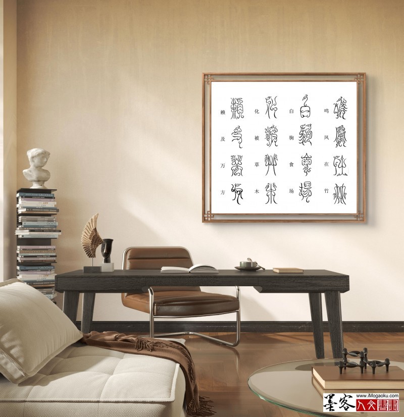 张彦中书法鸟虫篆场景